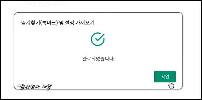 북마크 가져오기가 완료되었다는 메시지가 보이네요~